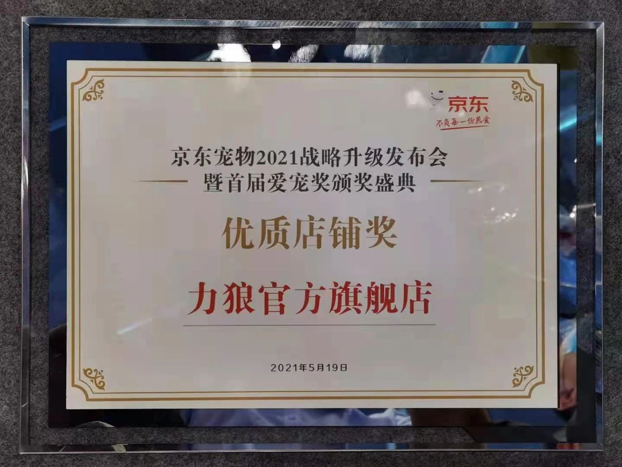 展會(huì)同期,在京東寵物2021年戰(zhàn)略升級(jí)發(fā)布會(huì)暨首屆“愛寵獎(jiǎng)”頒獎(jiǎng)盛典上,我公司力狼官方旗艦店榮獲“優(yōu)質(zhì)店鋪獎(jiǎng)”,再次獲得了行業(yè)同仁的認(rèn)可。
