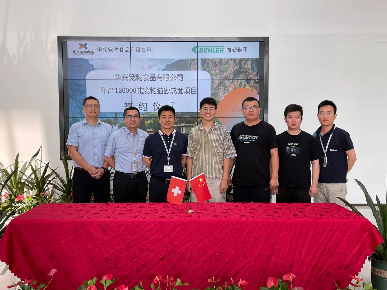 華興寵物食品與布勒集團成功簽約12萬噸寵物貓砂成套項目